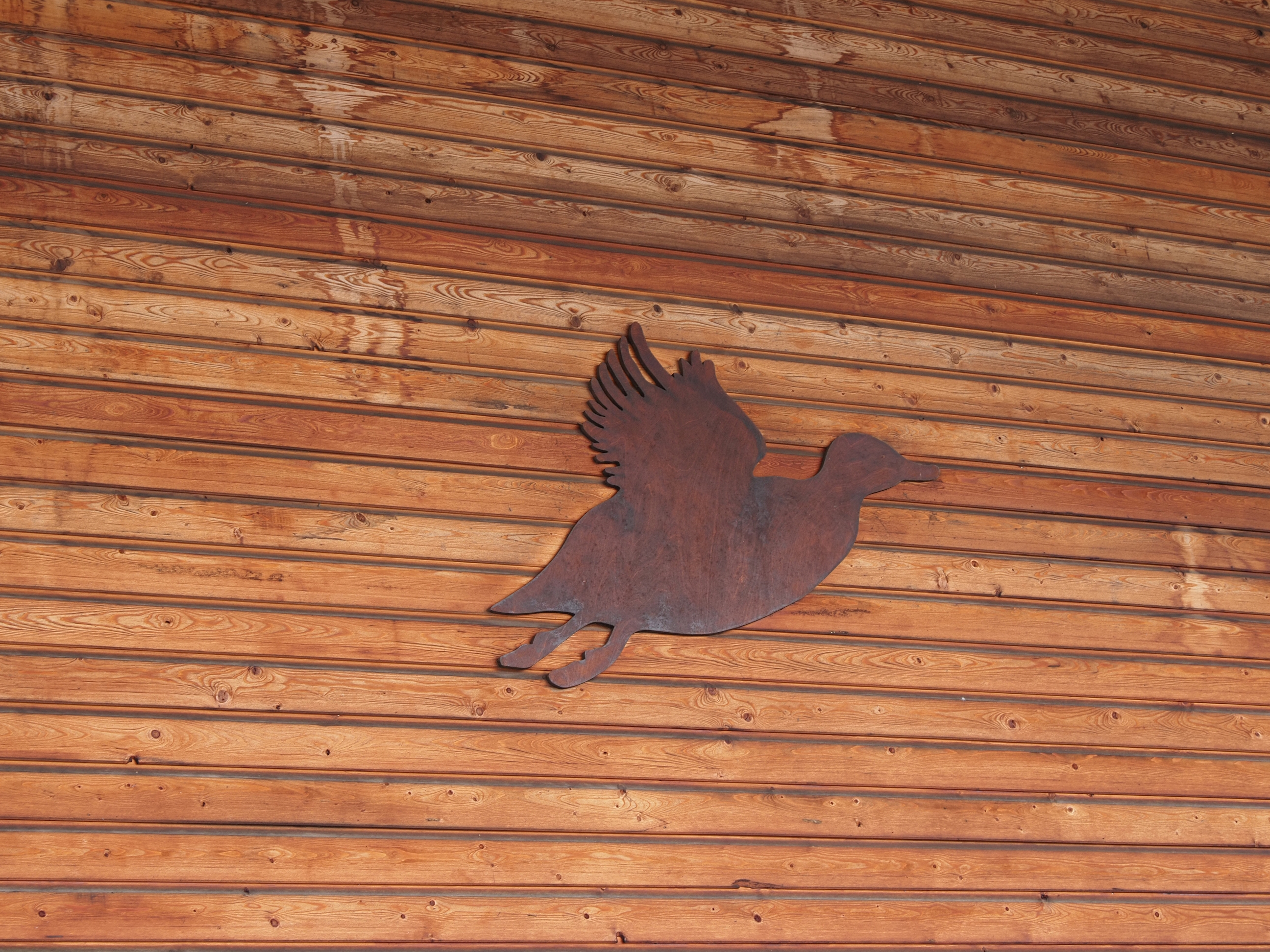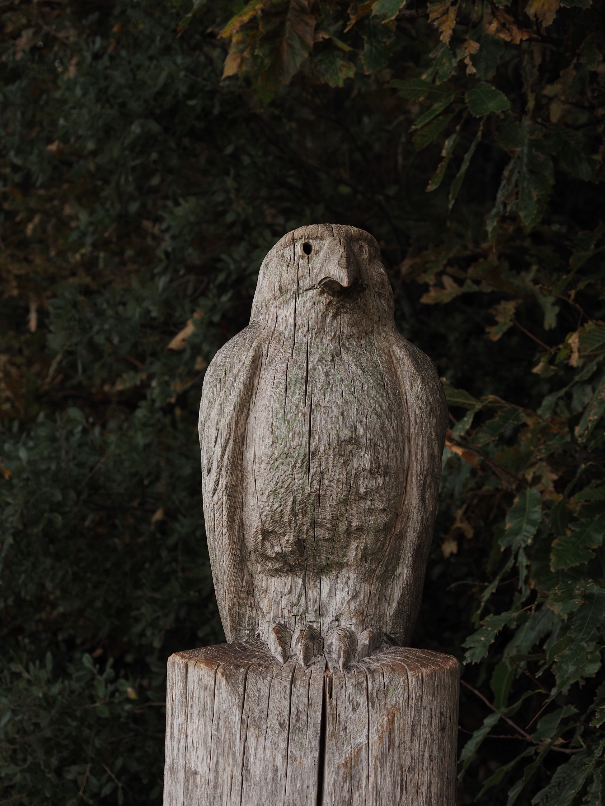 Some lovely countryside art that someone carved on a wooden post . . .