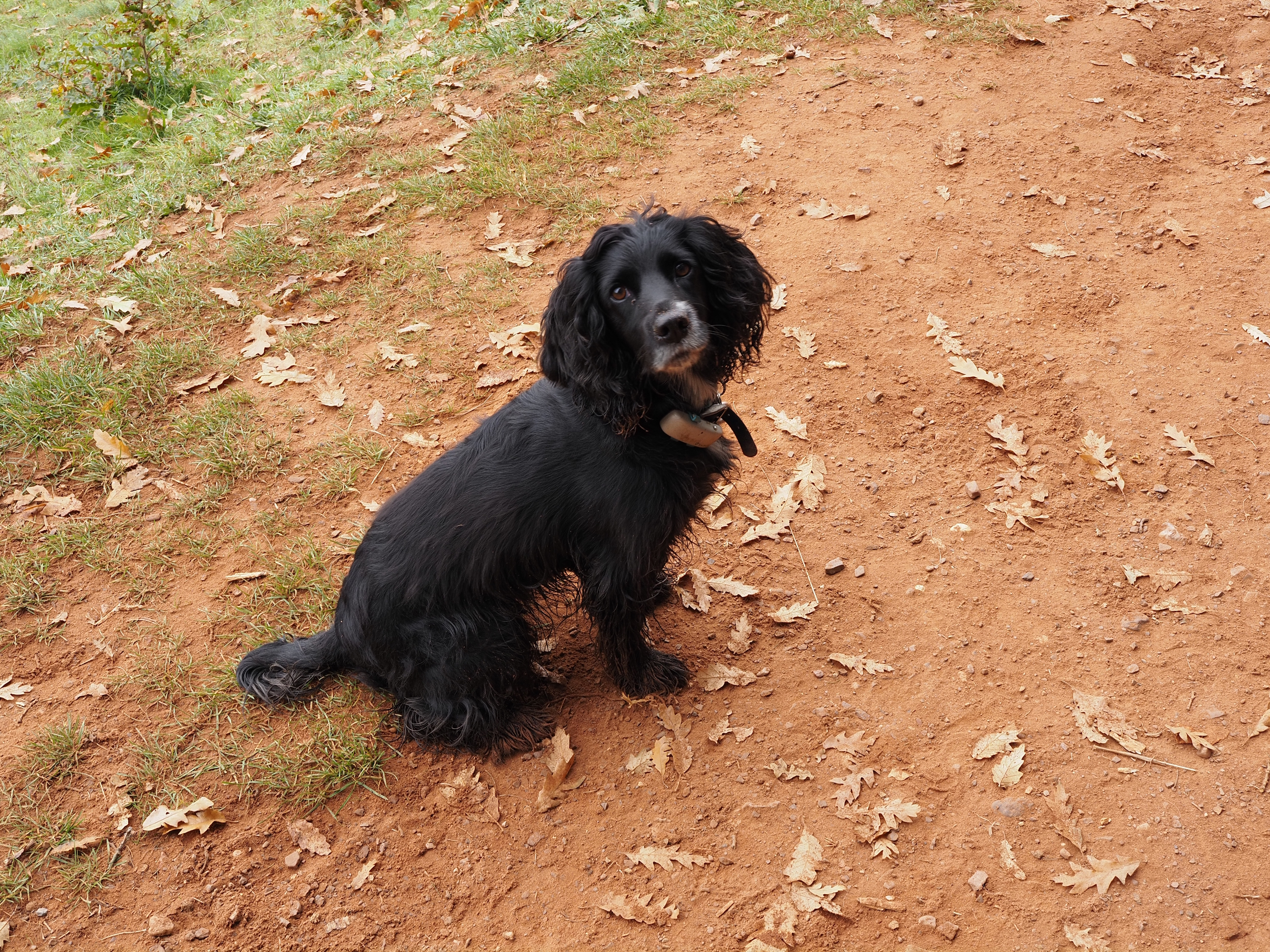 Tora enjoying walking with her muddy feet . . .
