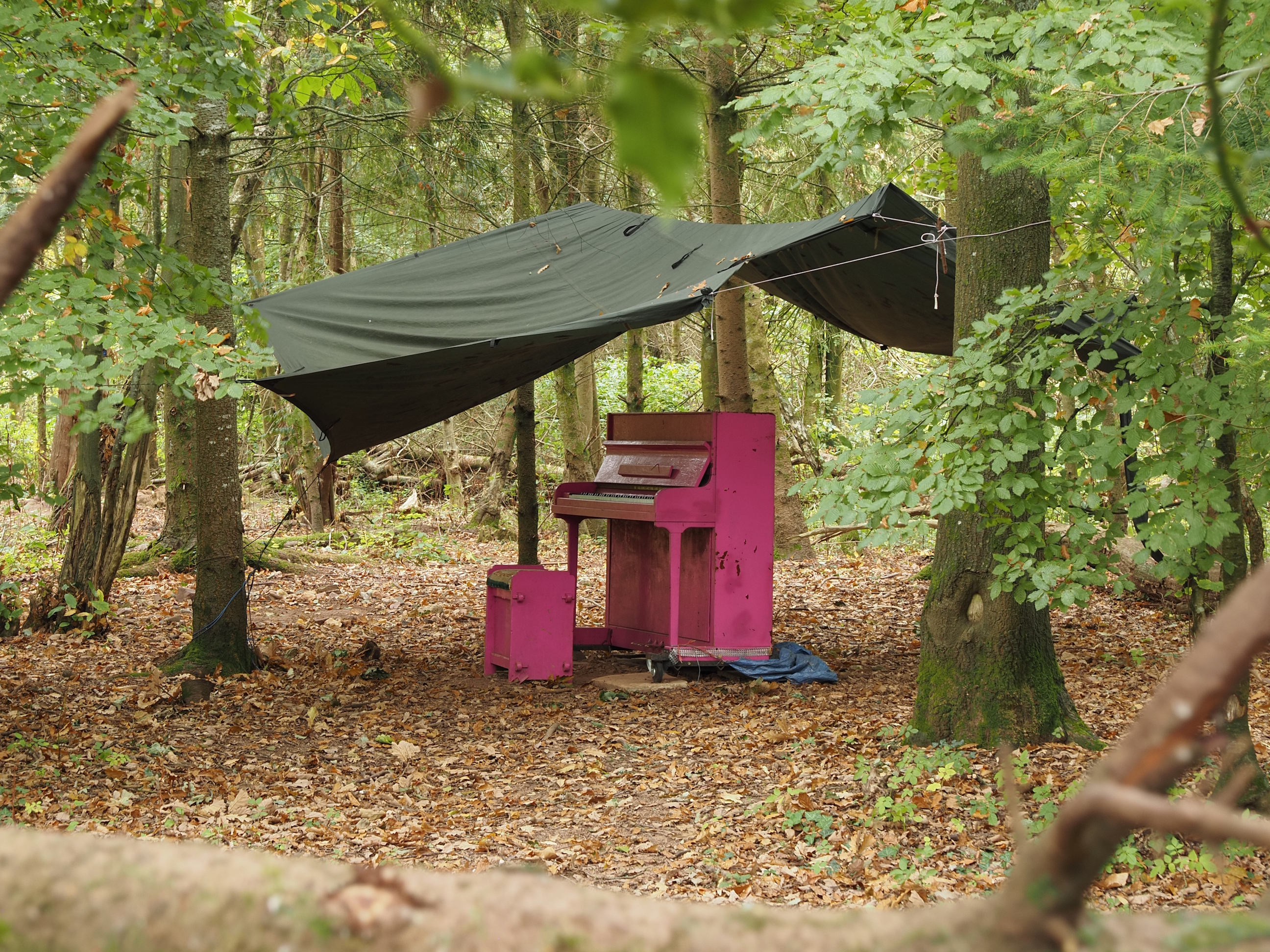 And then we find a piano, a bright pink piano, in the middle of the woods, random! . . .