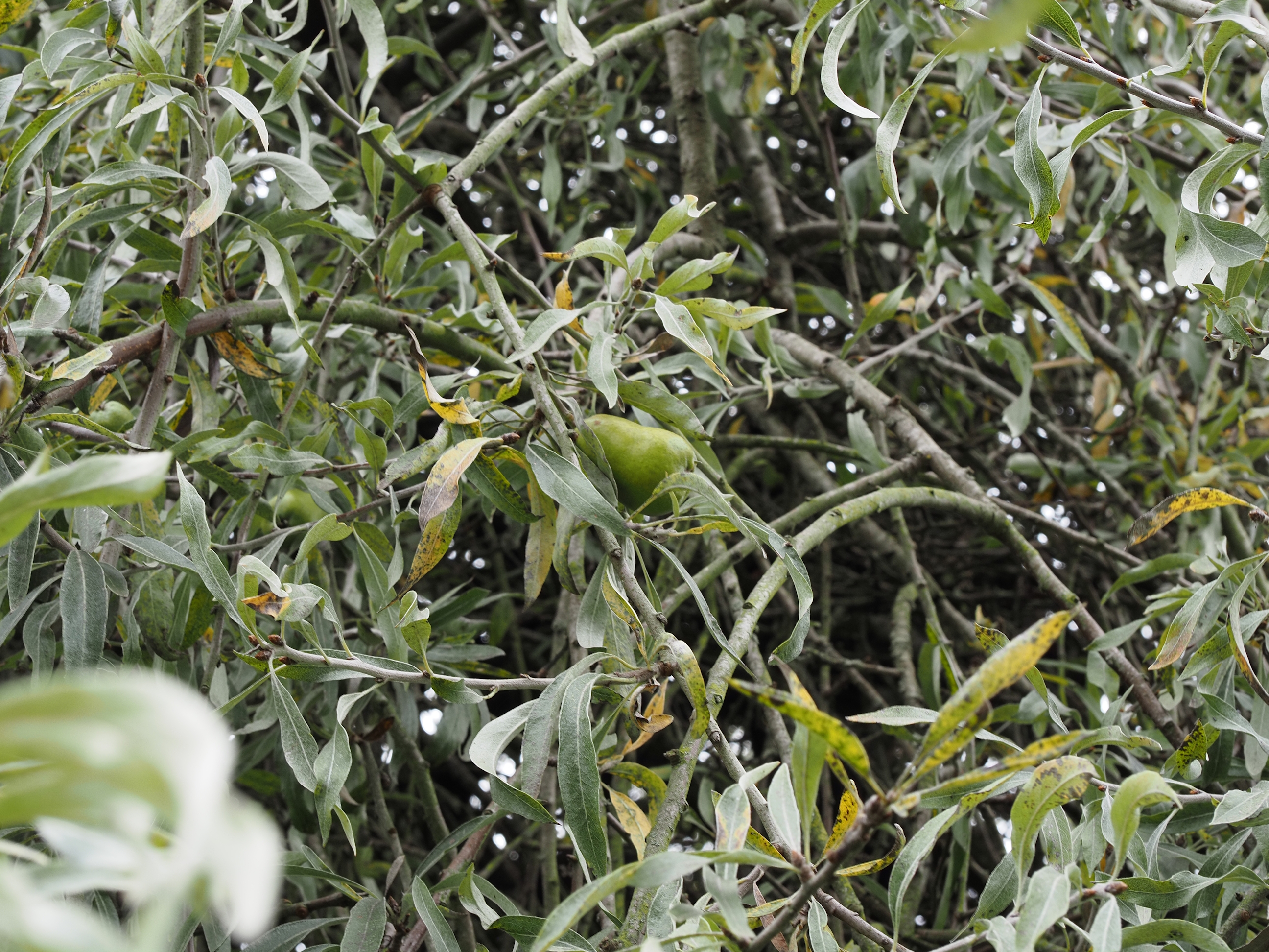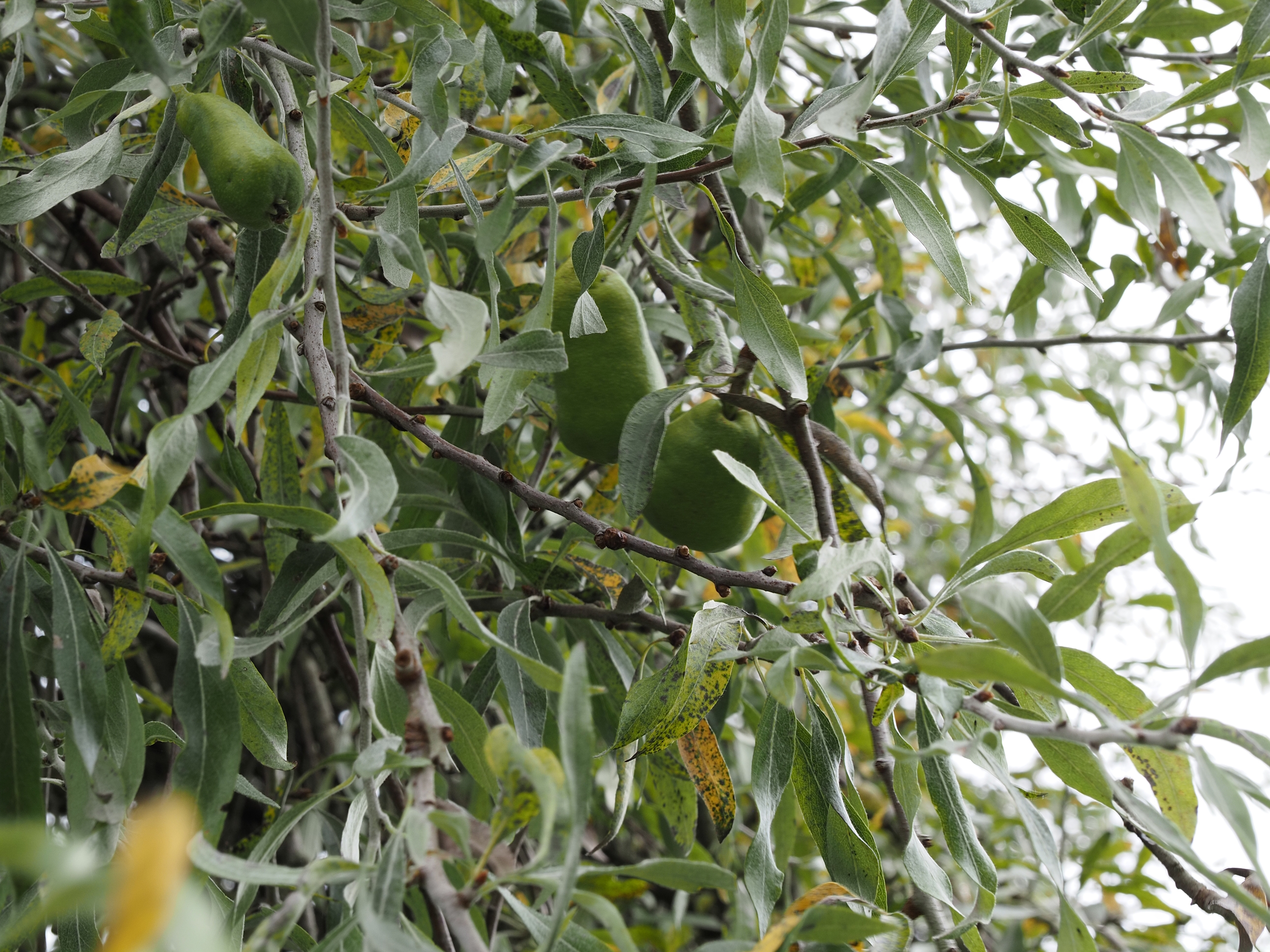 Then we came across this tree with these tiny pears on it.   Pyrus salicifolia . . .