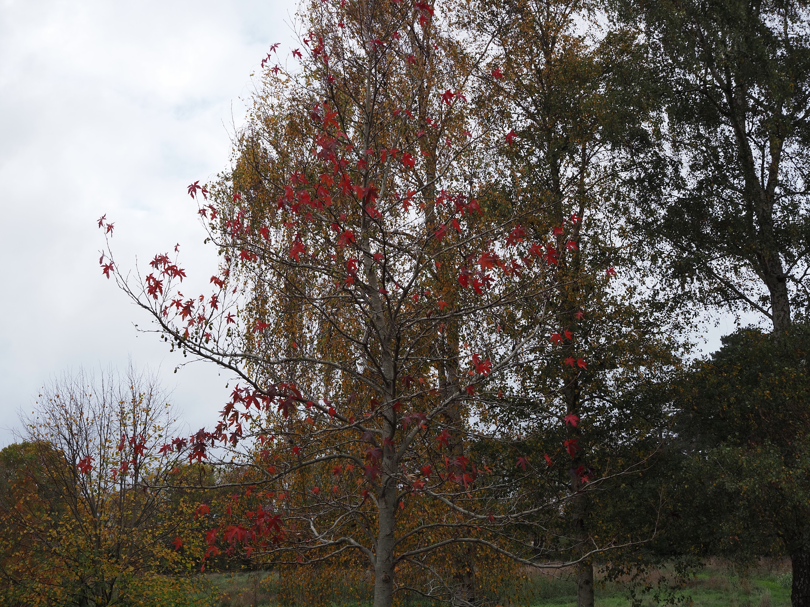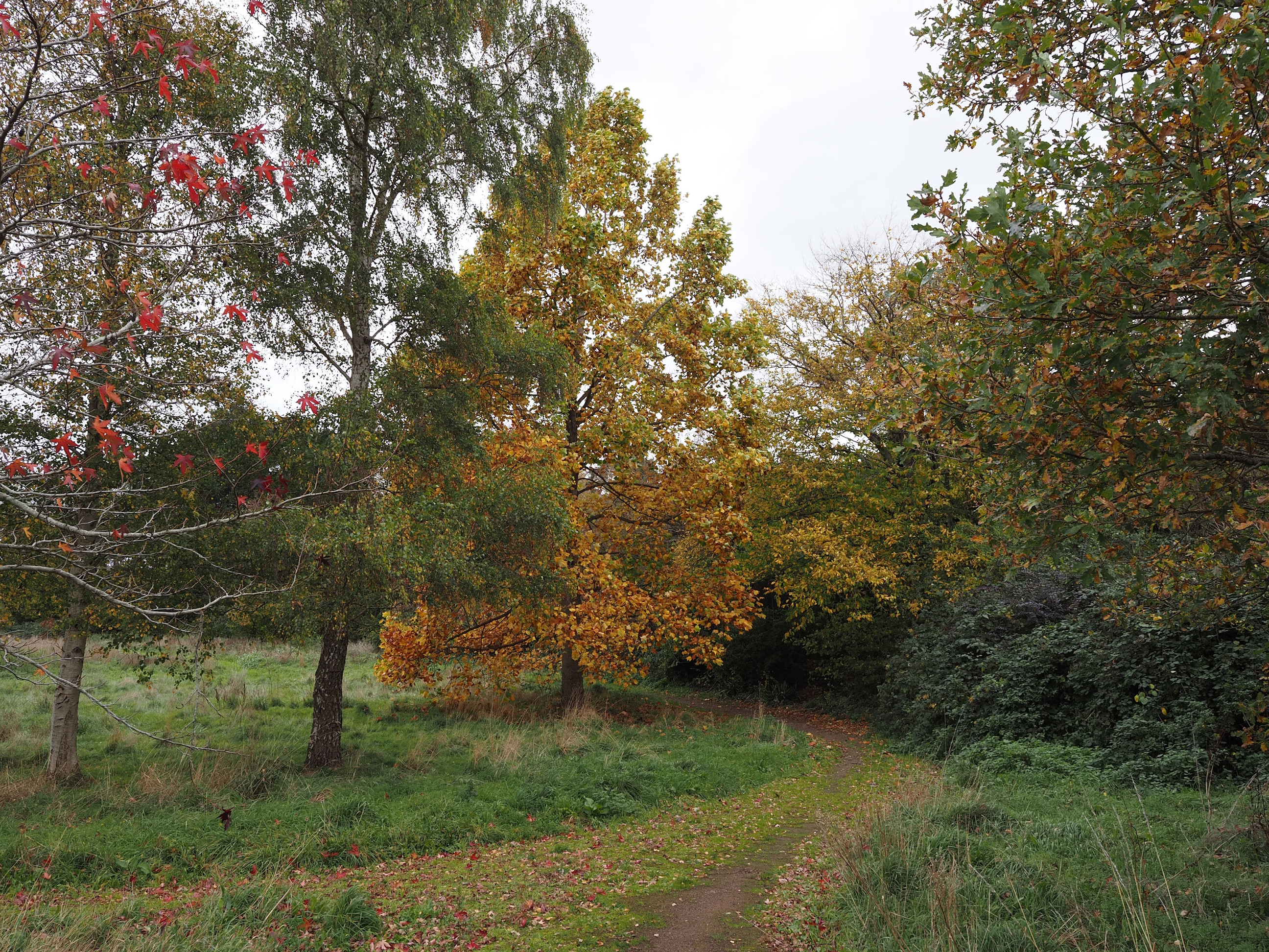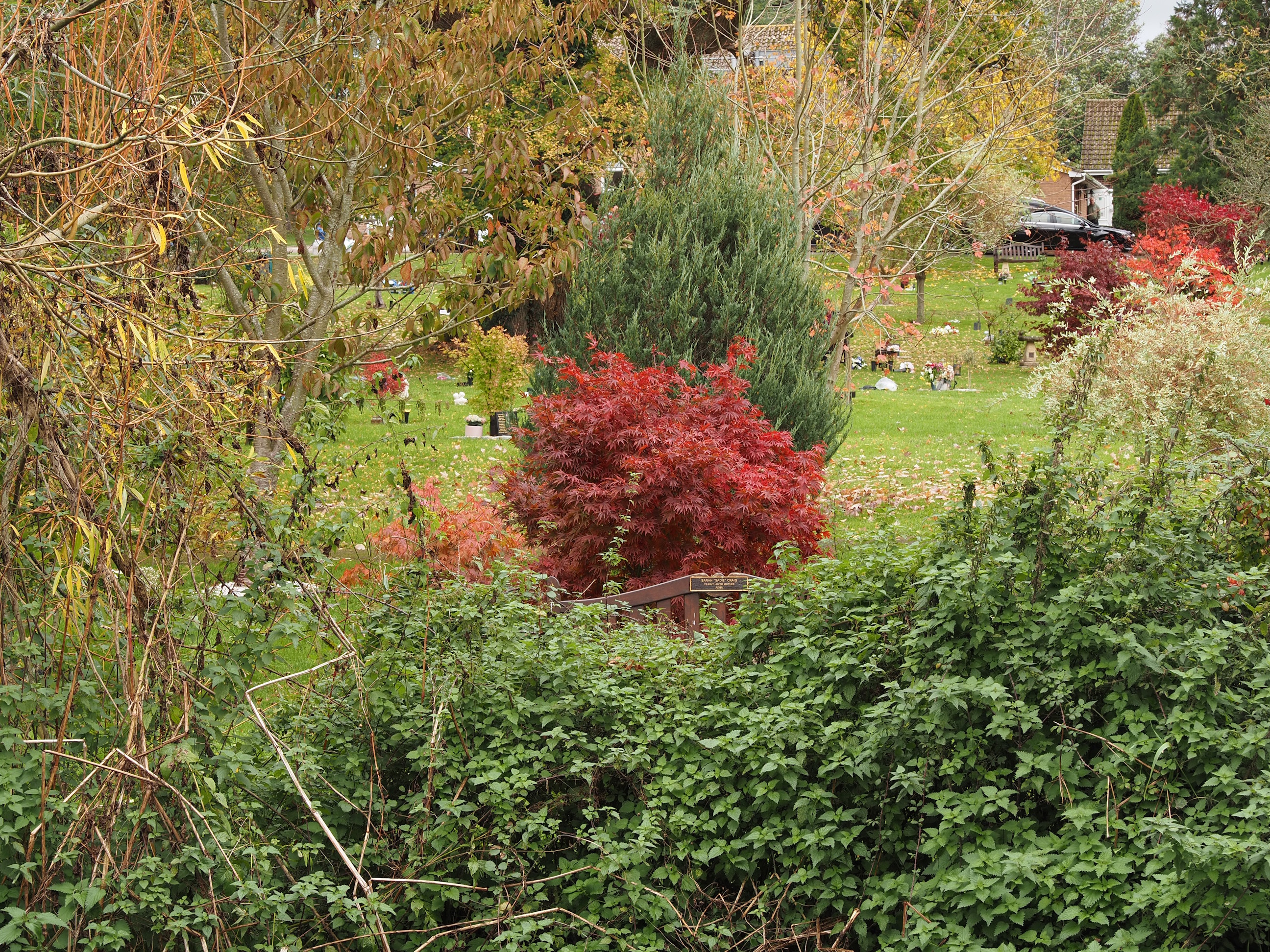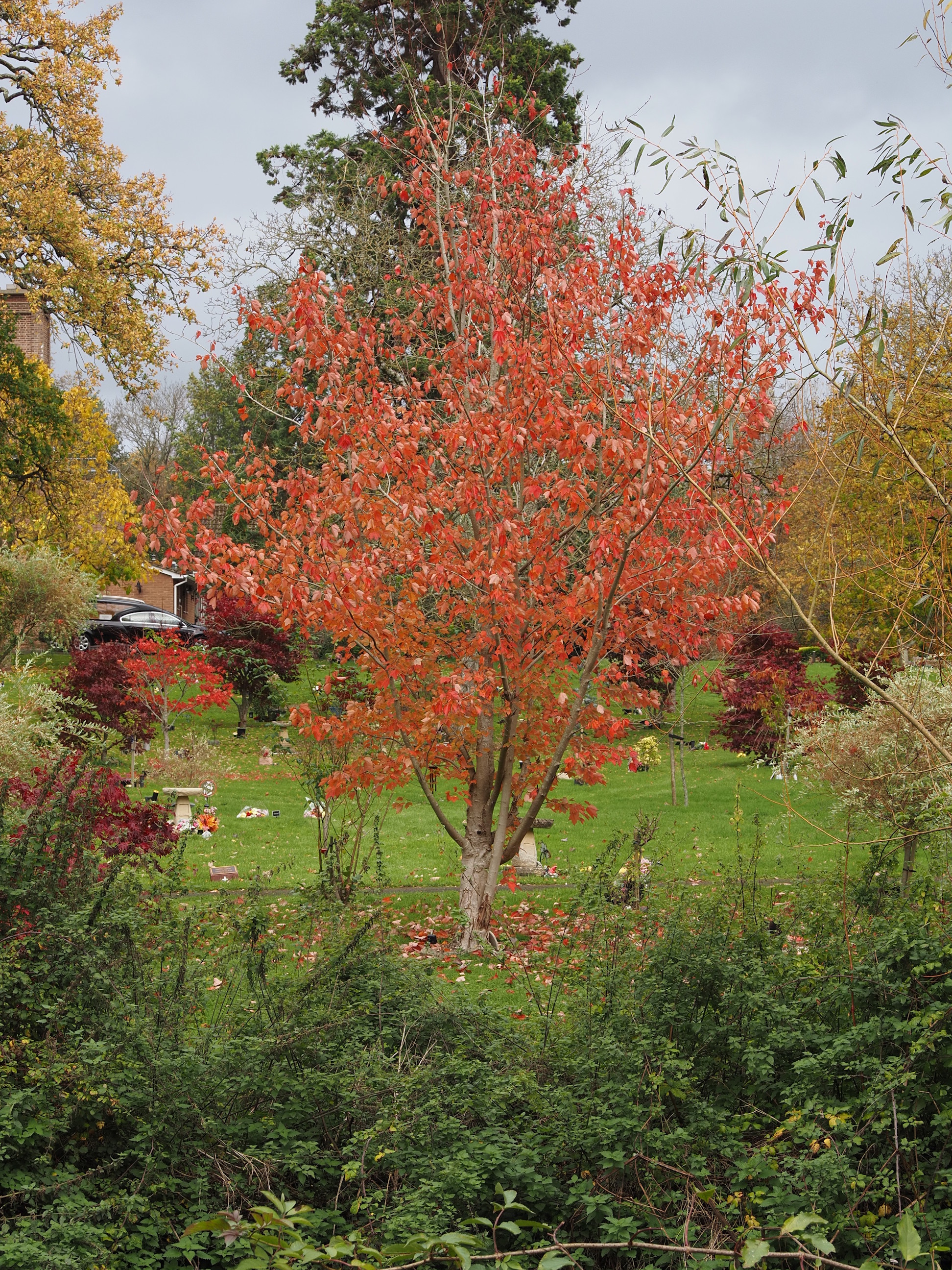 And onto the path that runs alongside the Crematorium. The gardens of remembrance are really nice: a delightful splash of colourful trees . . .