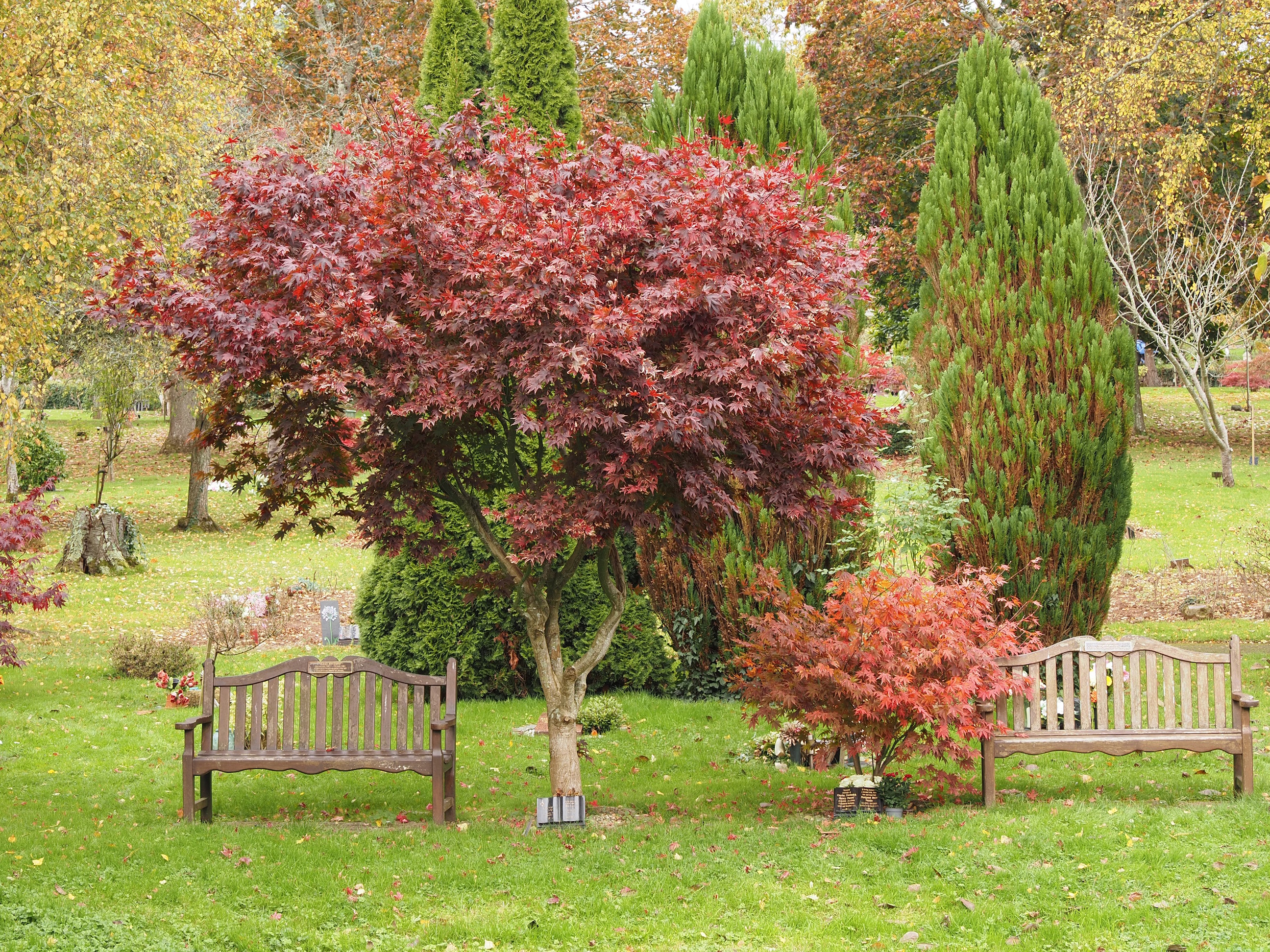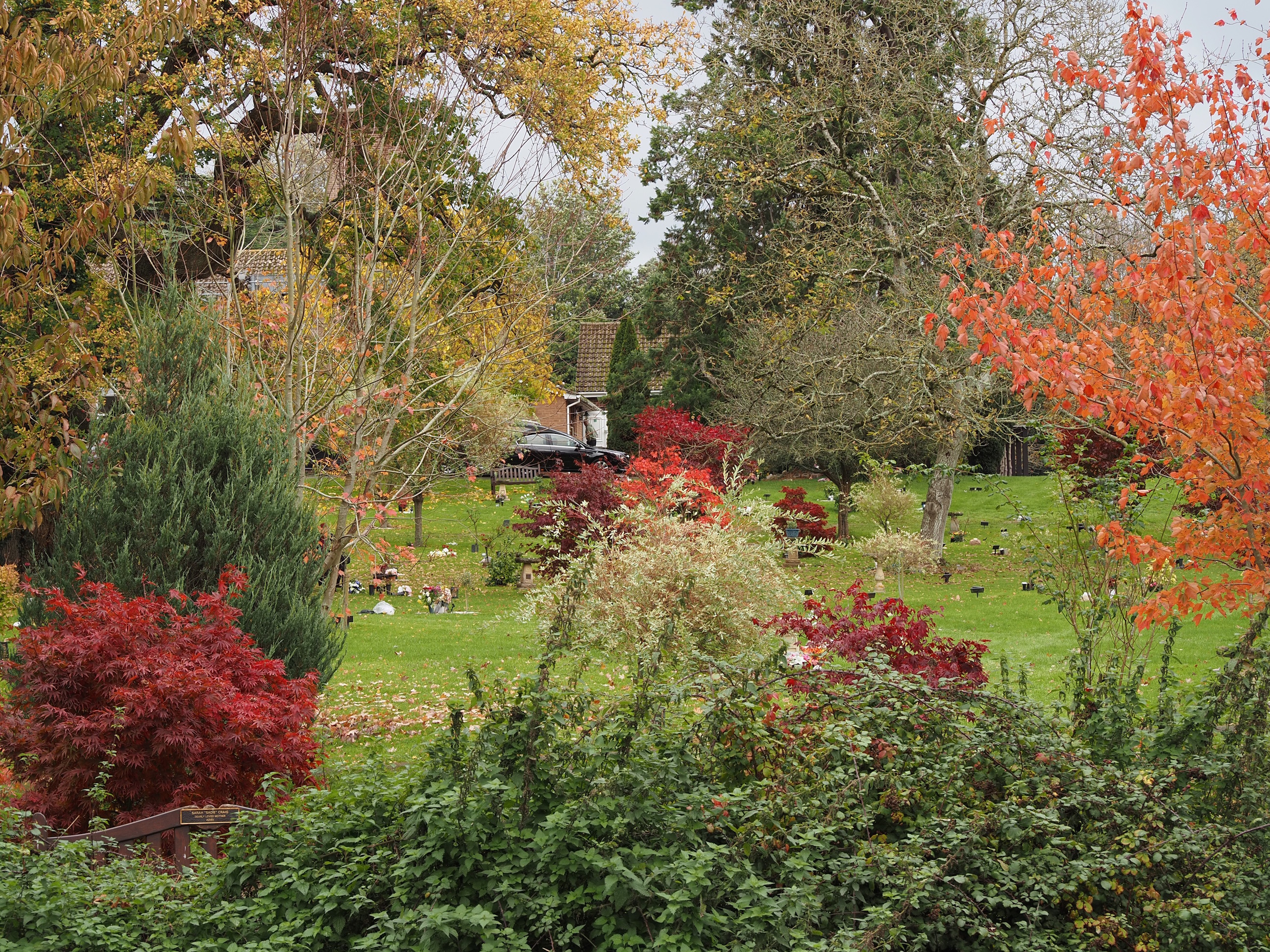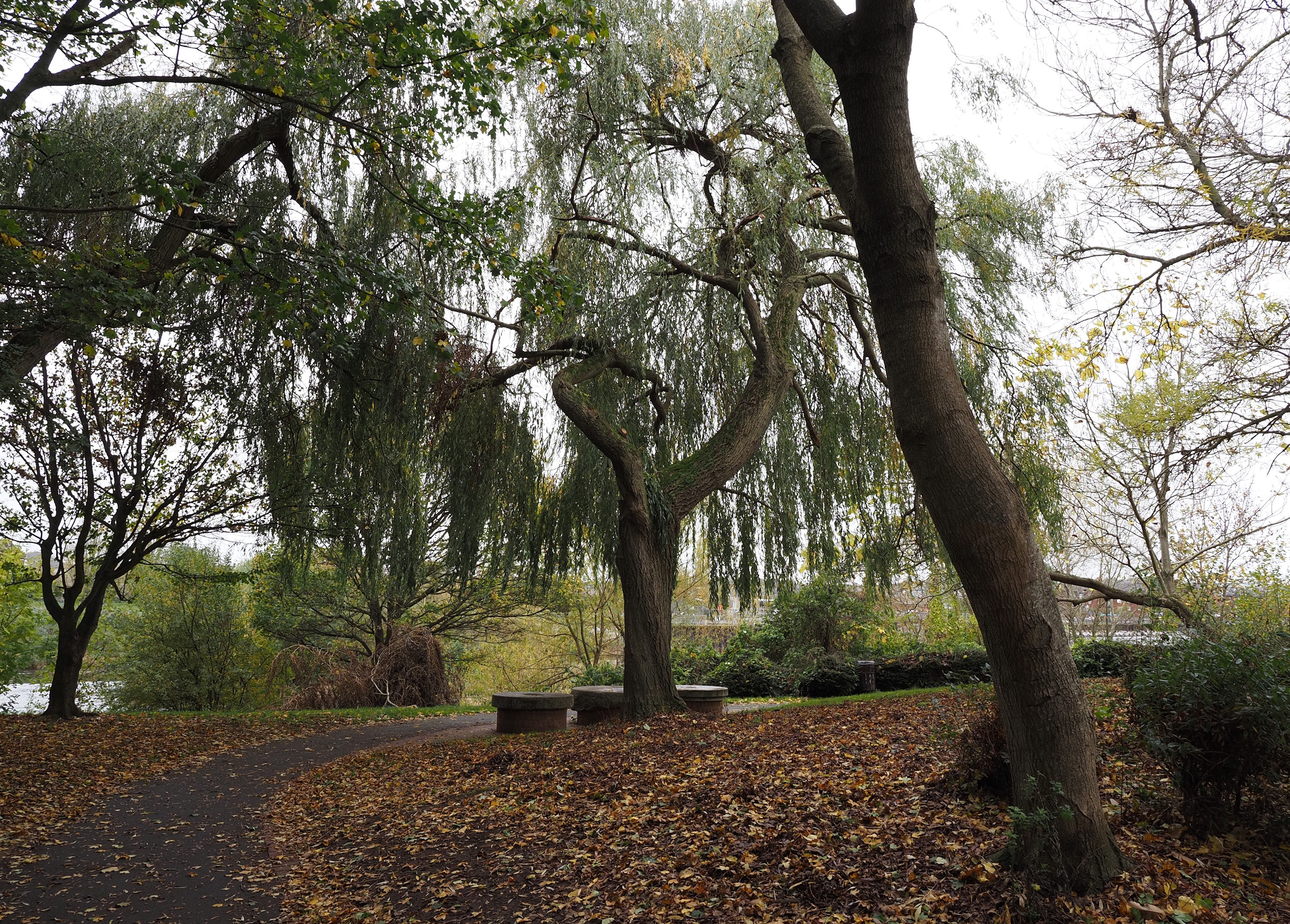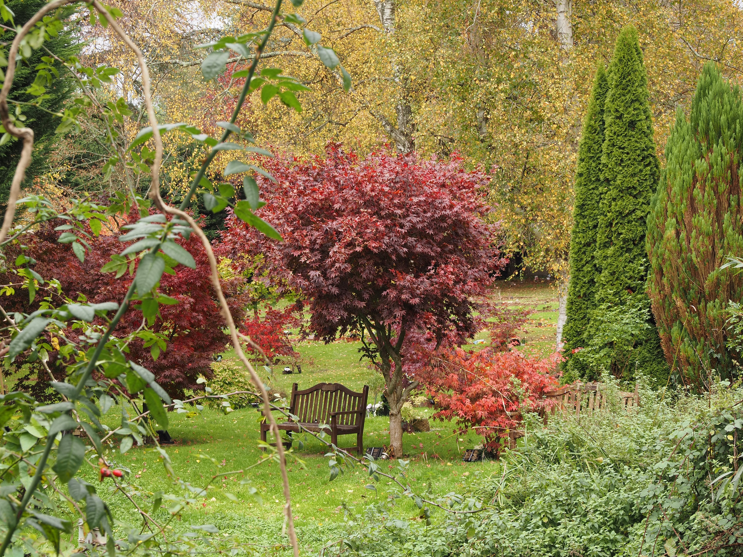 And onto the path that runs alongside the Crematorium. The gardens of remembrance are really nice: a delightful splash of colourful trees . . .