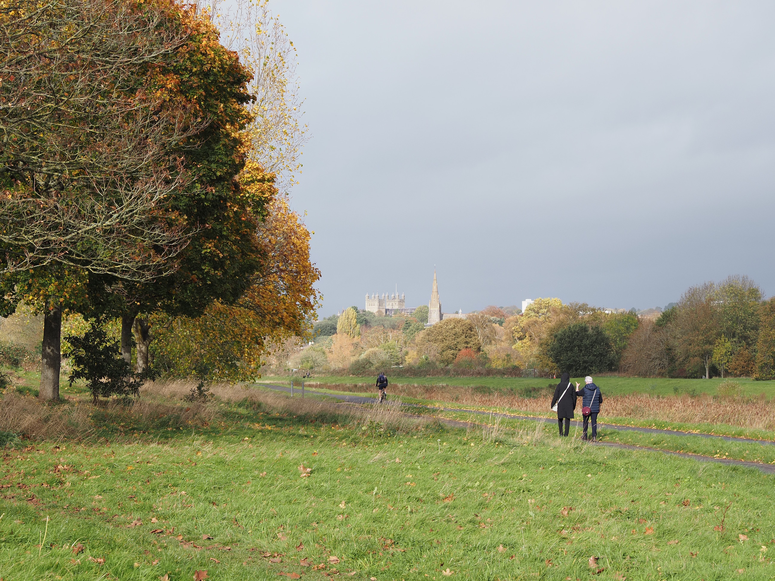 A lovely view of the cathedral towers with St Leonard’s Church tower in front . . .